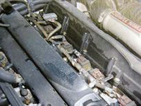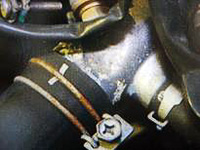 激しく漏れている場合は、エンジン下まで垂れてきてしまい、エキマニ等に付着しガソリン同様、最悪は車両火災に繋がる恐れがありますので早急な対策を。